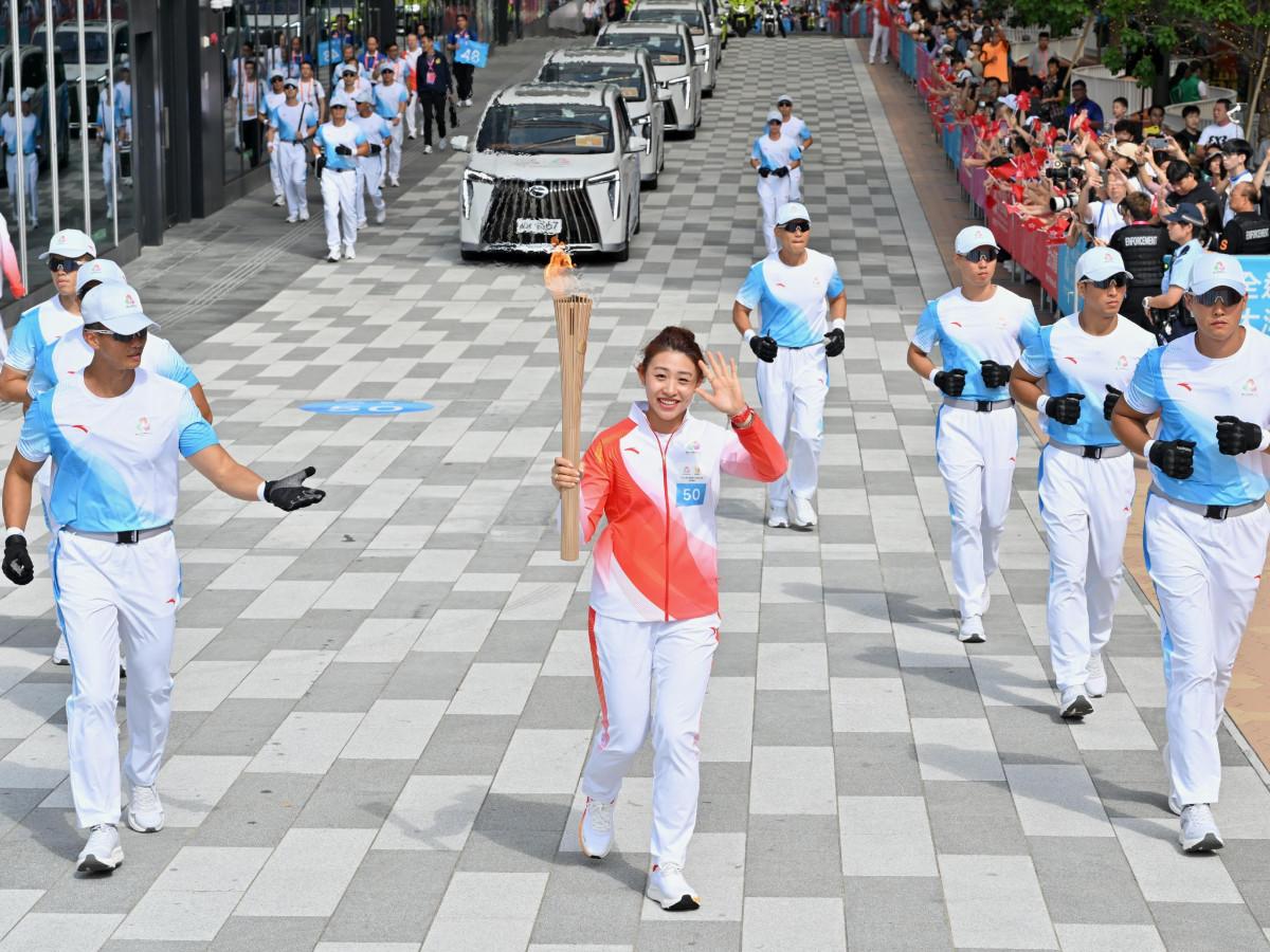 同大会聖火リレーのラストランナーを務めた香港女子フェンシング選手