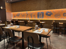 路面店の同店は39席を用意し、テーブル席を中心に構成。カジュアルな造りながら、「気取らず入りやすいデザインに仕上げている」という。冷めにくい石焼きをメーンに使うことで店内に香りがあふれ、煙と音が食欲をそそる演出を施す。