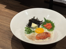 オープンに際して地元香港人のコンサルタントシェフと共に半年かけてメニューを開発したというが、全てのメニューの中から代表的なものは香港に持ち込んだ。「滿腹套餐(まんぷくセット)」(78香港ドル)は、石焼きビビンバと冷麺のセットで、大阪で一番売れているメニュー。冷麺に使う麺は、日本の自社工場で製造したものを直送し弾力があるという。「炸蟹餅(カニコロッケ)」(68香港ドル)はクリームコロッケでなく、カニ肉が8割の香港限定メニューだ。酸味のあるトマトソースと秘伝のタルタルソースをかけて味の濃淡を楽しませる。ほかにも「泡菜餃子(キムチギョーザ)」(48香港ドル)や南蠻鶏(チキン南蛮)」(35香港ドル)も用意する。