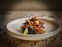 雲南名産のプーアル茶で燻した「三黄鶏の燻製」