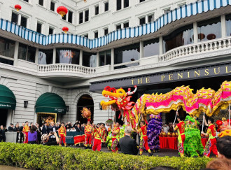 香港でも2月17日、旧正月初日を迎え、各所で旧正月の催しものが展開されているが、香港を代表するホテル「ザ・ペニンシュラ香港」では毎年恒例の旧正月を祝うセレモニーに続き、ドラゴンダンスやライオン(獅子舞)ダンスのパフォーマンスで幕を開けた。