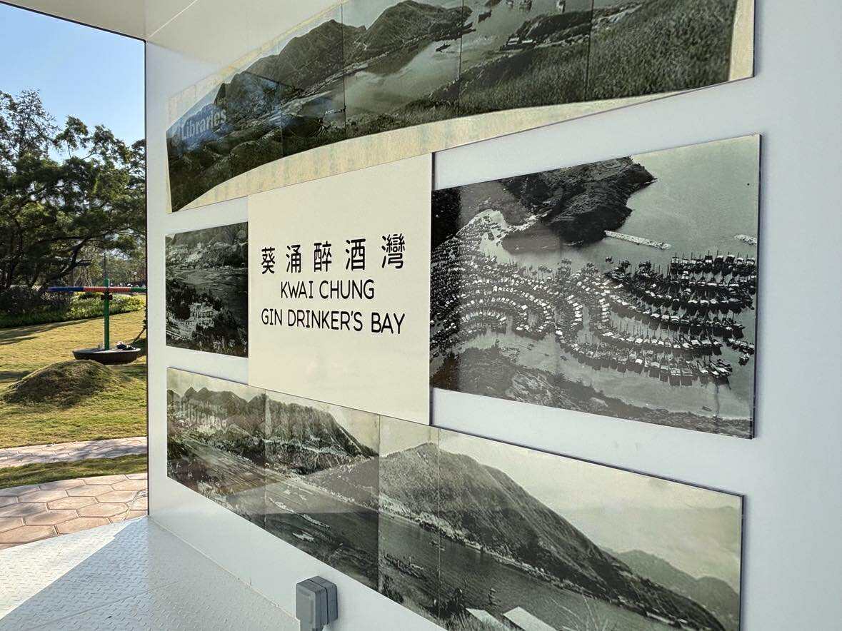 醉酒灣埋立地の変遷がわかる写真も展示されている