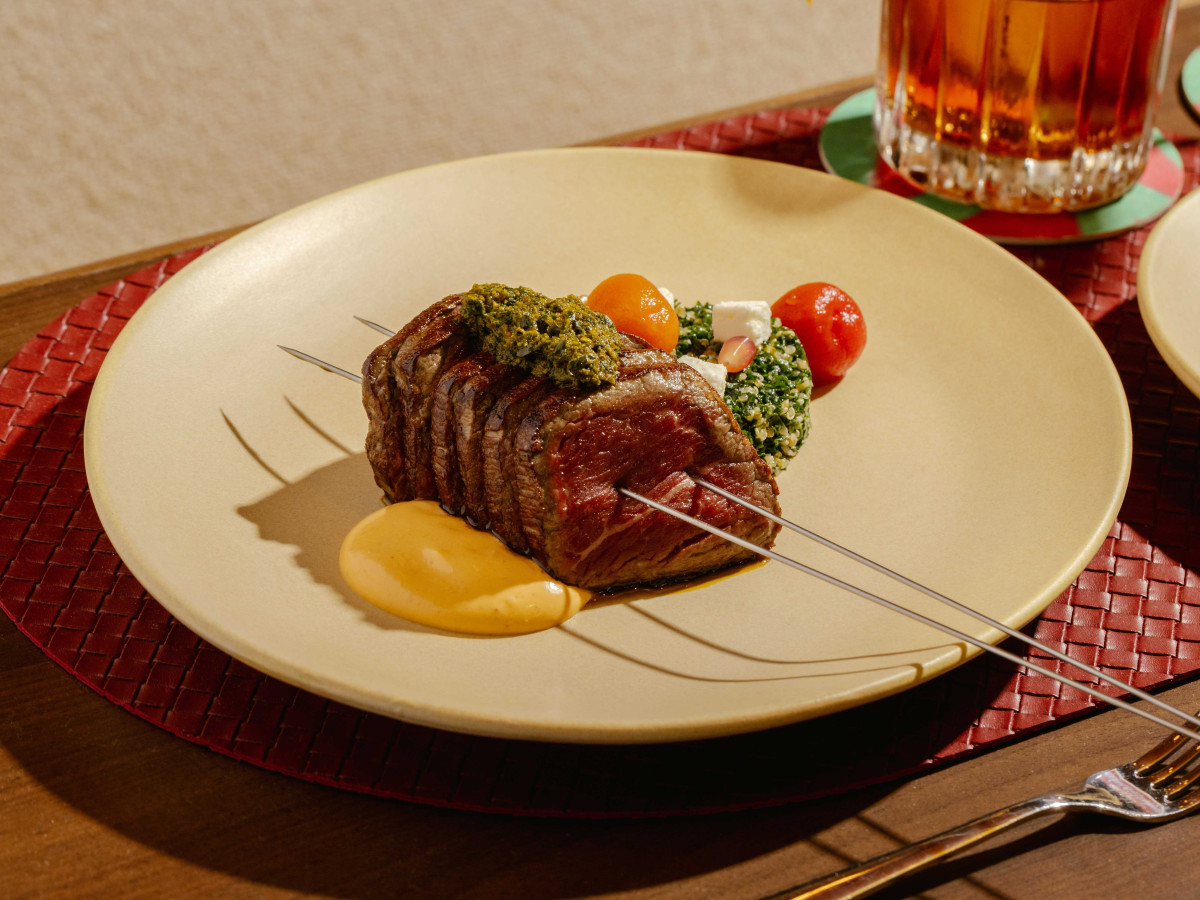 北アフリカで使われる伝統的なマリネソースを加えた牛フィレ肉の串焼き「Chermoula Beef Tenderloin Brochette」